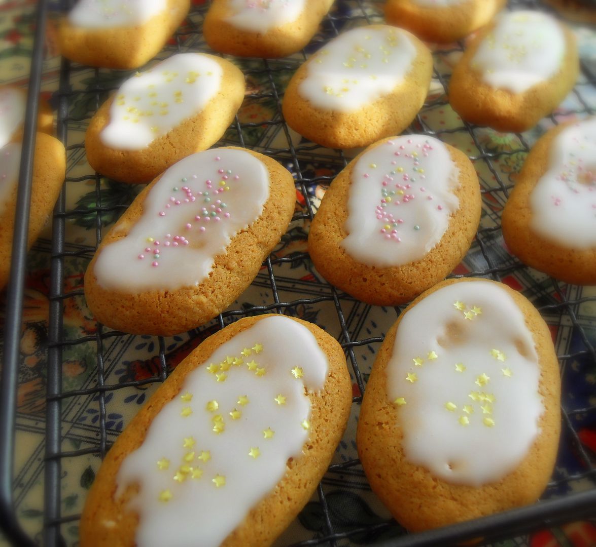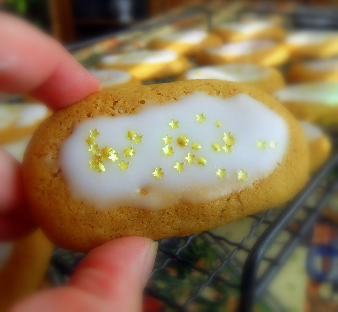 Crisp and spicy and gloriously decorated with a yummy lemon glaze and lots of pretty sprinkles . . . I picked up those pretty little gold stars at Lakeland the other day. I just fell in love with them!